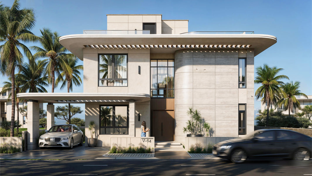 Zahra - Seaside Villas offer exclusive coastal living at Zahra North Coast, with villa sizes ranging from 200 m² to 300 m². The design integrates travertine marble cladding, a soft off-white palette, and lush landscaping, creating a harmonious blend of modern aesthetics and natural beauty.